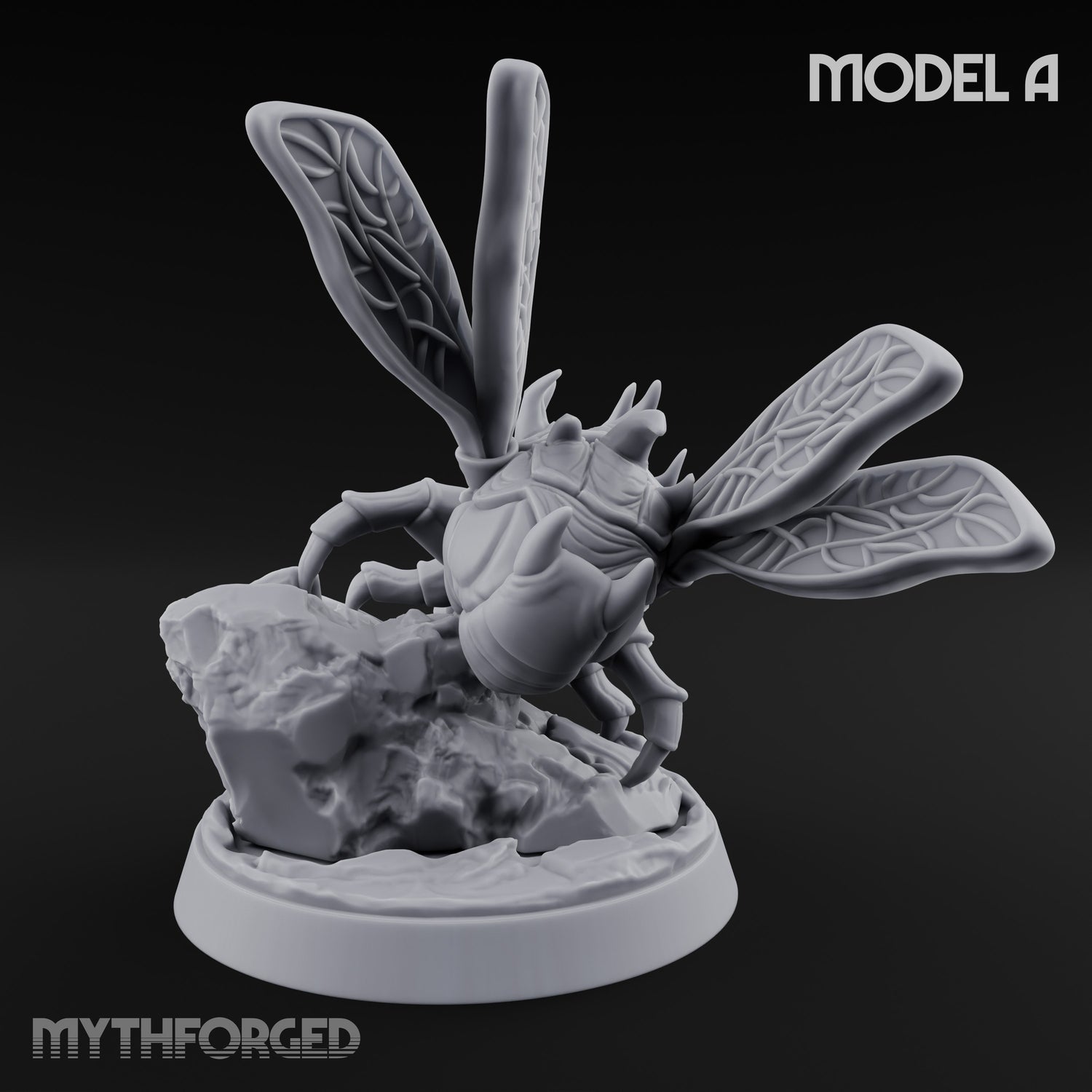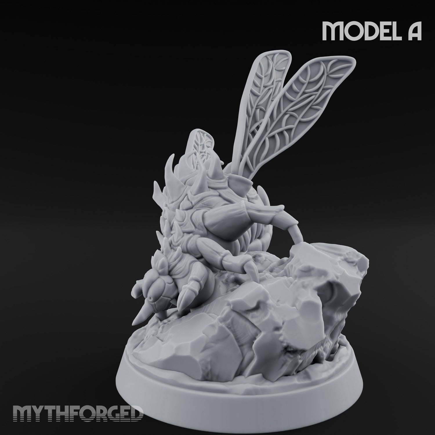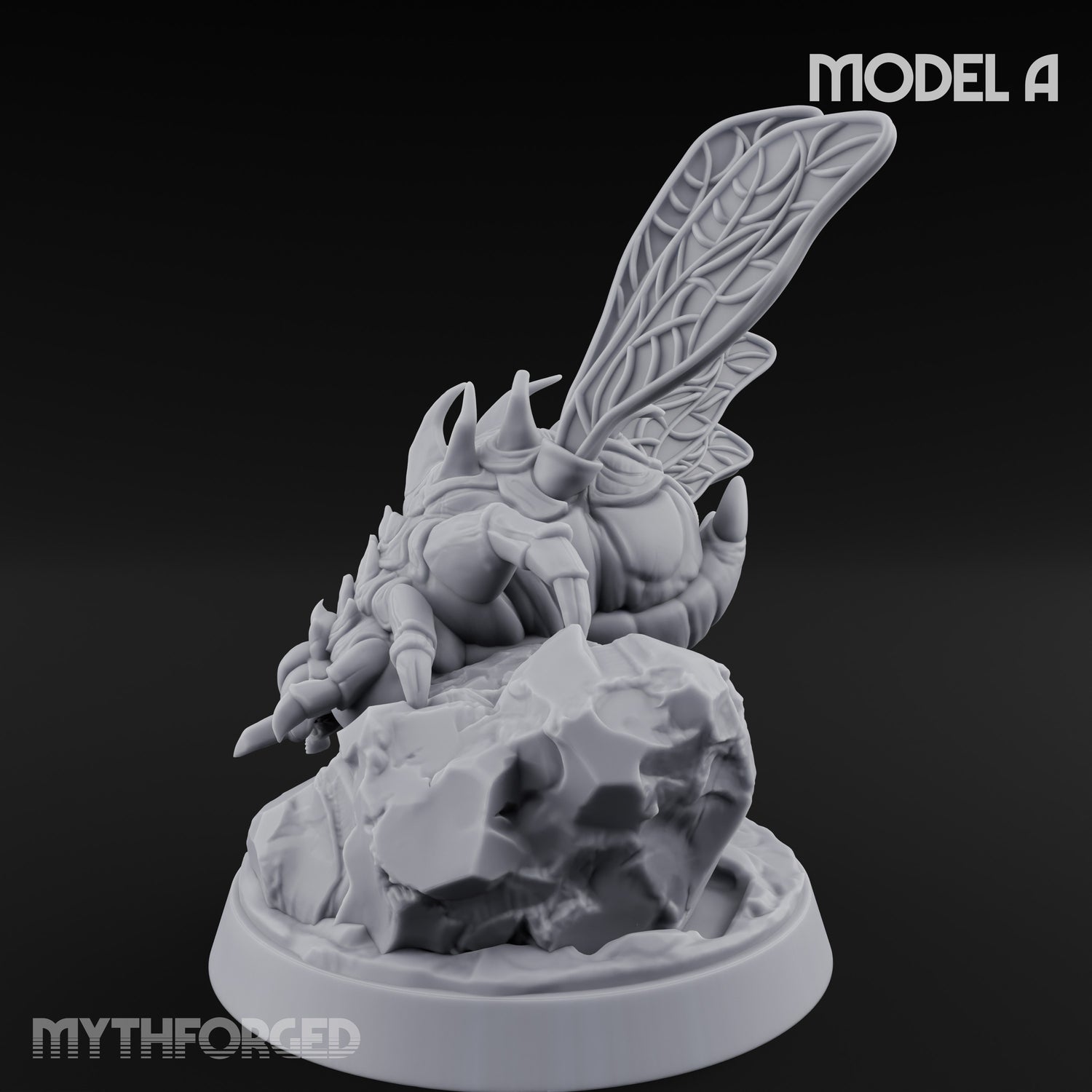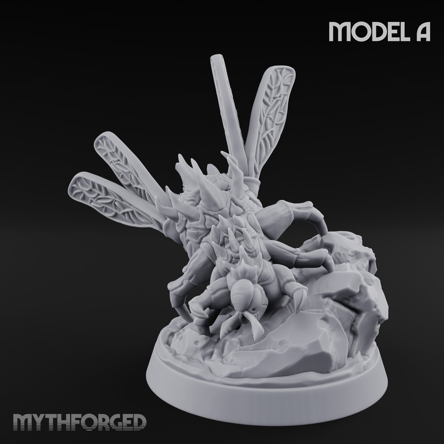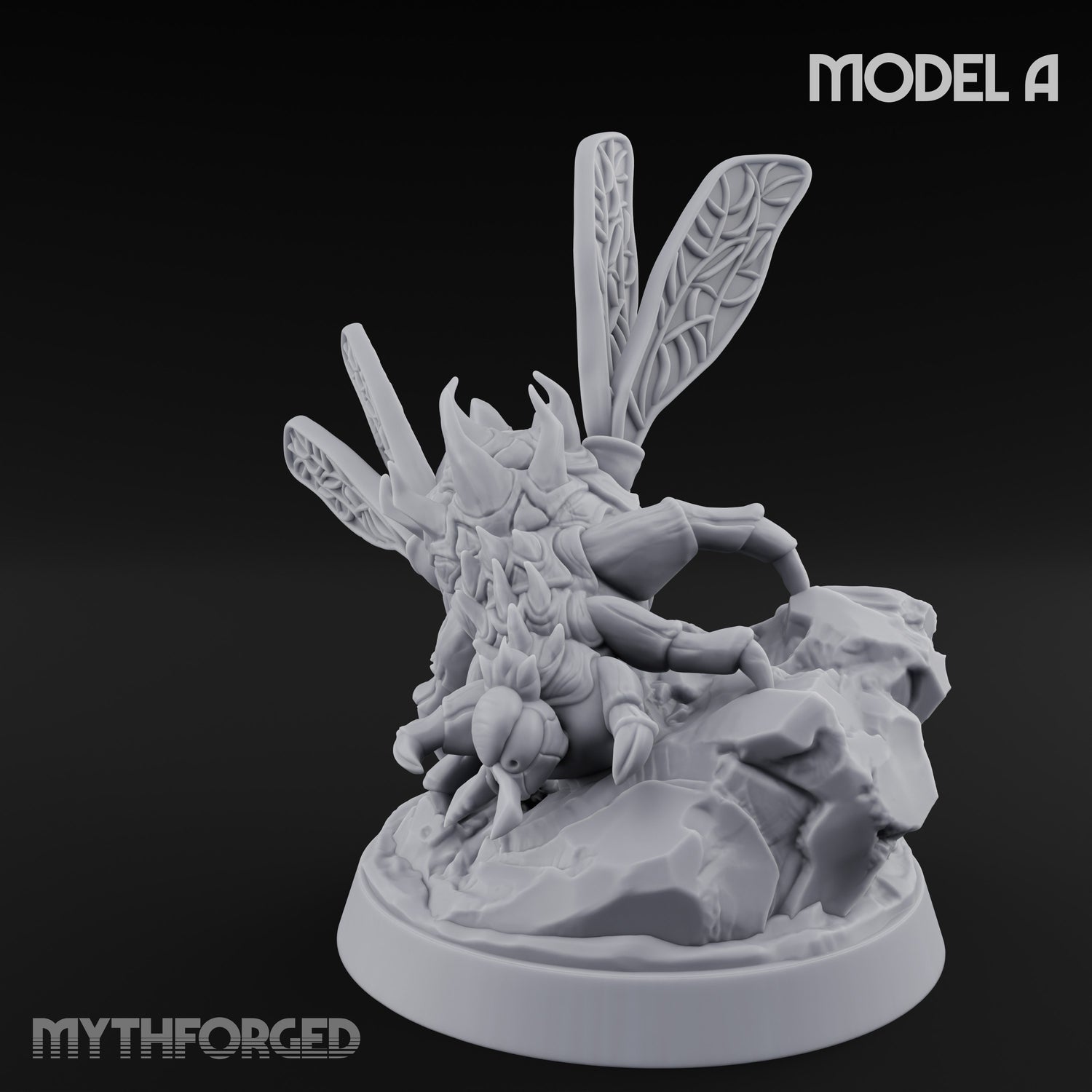 - Dynamic winged pose with grotesque bloated carapace texture