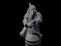 Clad in segmented lamellar armor, this disciplined archer maintains perfect form with his recurved bow at the ready. Stone-carved plates protect his torso while flowing robes allow for fluid movement. His stoic expression reflects centuries of unwavering duty, whether guarding imperial secrets or serving as an animated construct in your campaign.