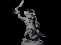 Crafted to tell a compelling story, this miniature's pose is dynamic and full of energy, with one leg bent as if poised to leap into action. It brandishes a primitive spear adorned with tribal decorations, ready to rally its kin or cast a spell. Its attire, composed of ragged seaweed and salvaged materials, speaks of a resourceful creature making do with the remnants of the ocean. The Scabby Brine Goblin D is a testament to the creativity and survival instincts of its kind, a perfect addition to any fantasy narrative.