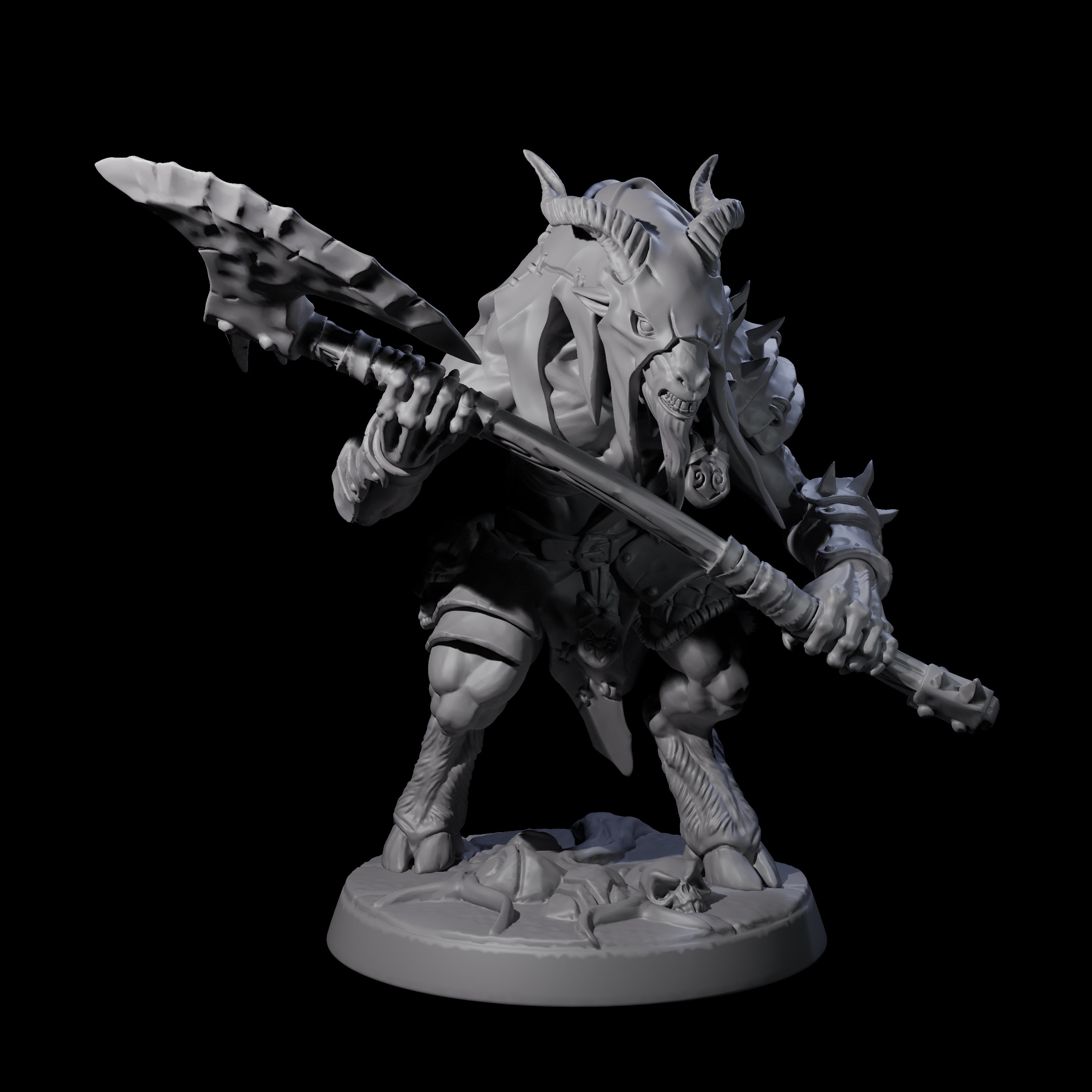 The Shadowy Beastman D stands as a formidable addition to any fantasy tabletop role-playing game. Made with intricate detailing, this miniature embodies a dark and primal aesthetic, featuring a fearsome horned visage and elaborate tribal adornments. The armor is rough-hewn and organic, evoking the feral nature of this creature while its menacing gaze hints at an intelligence both unsettling and cunning.