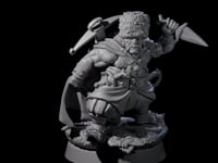 Discover the captivating detail of the Barovian Dwarf Hunter miniature, a masterful representation of a stout and resilient dwarf, perfect for your tabletop roleplaying games. With a dynamic pose and a determined expression, this figure captures the essence of a seasoned hunter. The dwarf's thick, rugged beard and long hair are partially concealed by a distinctive fur hat, adding a touch of authenticity and character to your gaming experience. Every element from the heavy crossbow slung across his back to the large, sharp dagger in his hand speaks of his readiness for combat.
