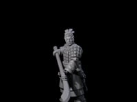 This disciplined warrior stands at attention with ceremonial polearm held ready, his lamellar armor reflecting ancient military traditions. His composed stance and watchful expression speak of countless hours of training and discipline. The intricate armor plating and traditional weapon styling make him perfect for historical campaigns or fantasy settings inspired by classical dynasties.