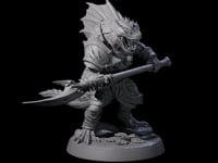 Designed to embody the spirit of a warrior or barbarian class, this lizardfolk miniature tells a story of primal strength and unyielding courage. Equipped with a large, serrated sword, it’s ready to engage in close combat, showcasing its prowess and readiness for battle. Whether leading a charge or defending its territory, the Spiky Lizardfolk F stands as a symbol of resilience and power, inspiring the imagination to weave tales of epic confrontations and heroic deeds.