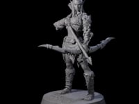 Introducing the Tree Ranger A miniature, a stunning representation of elven elegance and precision. Standing at a base size of 25mm, this miniature captures the essence of a lithe and poised fantasy ranger. Every detail, from her pointed ears to the elegantly crafted long, curved bow she holds, speaks to her readiness for action. Her attire, intricately designed to mimic natural foliage and leather, ensures she blends seamlessly into forest environments, embodying the stealth and agility that are trademarks of a ranger class.