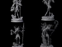 These archdruid miniatures showcase the darker side of nature magic, their forms intertwined with thorns, vines, and twisted branches. Each figure strikes a different commanding pose - one bearing a staff crowned with antlers, another with arms raised in terrible invocation. Bark-like skin and organic growths blur the line between humanoid and plant. Perfect for campaigns where nature itself has turned malevolent.