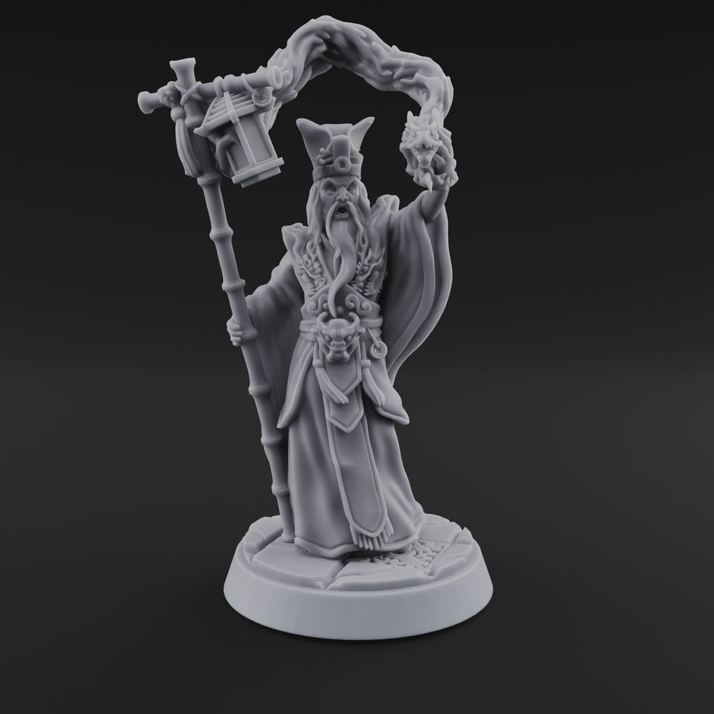 Station this legendary sennin as an immortal sage guarding a mountain shrine in your D&D or Pathfinder campaign, or deploy him as a devastating spellcaster NPC in a climactic boss encounter. He commands equal presence as a warband centrepiece for Eastern-inspired fantasy skirmish games, a mystical hero choice in 28mm wargaming armies, or a powerful sorcerer-lord leading rank-and-file troops into battle. However you field him, this is a miniature that demands the spotlight.
