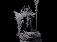 This detailed miniature captures a commanding plant-based warrior in an upright stance, wielding an ornate spiked staff. Multiple sharp protrusions emerge from its heavily armored form, while a tattered cloak flows from its shoulders, adding dynamic character. The circular base features intricate sculpted tendrils and roots, creating an organic foundation that enhances the figure's imposing presence. The gnarled, textured surface throughout the miniature provides excellent opportunities for detailed painting techniques.
