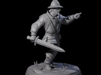 This detailed miniature captures the essence of a hastily assembled defender, featuring a practical belted tunic with long sleeves and sturdy trousers. The distinctive domed helmet with its prominent crest marks them as part of an organized force, while utility pouches at the belt suggest preparedness for extended duty. The dynamic stepping pose and gesture convey authority, perfect for representing patrol leaders, town guards, or militia commanders. The carefully sculpted base, featuring scattered rocks and vegetation, provides a solid foundation for this detailed tabletop-ready figure.