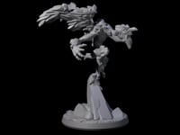 Introducing the Cold Ice Mephit miniature, a stunning representation of a winged creature that exudes an aura of icy menace. This meticulously sculpted figure is crafted to resemble jagged shards of ice or crystal, lending it a sharp and angular appearance. Its large, feathered wings, reminiscent of frost-covered plumage, add to its intricate detail, while its pose in mid-flight makes it a striking addition to any tabletop landscape. The Cold Ice Mephit is designed to capture attention with its fierce facial expression, open mouth, and sharp teeth, embodying a formidable presence.