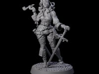 This miniature tells the story of a bold adventurer, a character full of charisma and flair. Whether she's leading a crew on the high seas or weaving through a bustling market, her aura of confidence sets her apart. The smoking pipe in her hand is a testament to her nonchalant demeanor, while her assortment of tools suggests a readiness for both calculated heists and spontaneous escapades. Her dramatic pose and intricate accessories make her the perfect centerpiece for any campaign narrative.