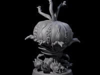 This detailed plant miniature showcases a bulbous, alien form with multiple pod-like structures and grasping tendrils. Most striking are the human-like legs protruding from an opening at its crown, creating an otherworldly silhouette that defies natural order. The sculpted base features an intricate network of twisted roots and dense foliage, emphasizing the creature's connection to its environment and providing excellent opportunities for technical painting.