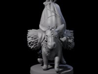 The Stitched Together Zombie Donkey miniature is a hauntingly detailed piece, capturing the essence of the undead in a familiar form. Its body is marred with visible stitches and patchwork scars, creating a grotesque yet fascinating appearance. This eerie detail is complemented by a vacant expression, characteristic of its reanimated nature. The sturdy pose and the large sack tied to its back suggest a readiness to serve, despite its unsettling exterior.