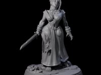 Once a powerful spellcaster, Roslyn now channels dark necromantic energies through her undead form. Her tattered robes and mystical blade speak to a lifetime of arcane study, while her decaying flesh reveals the price of her forbidden pursuits. Standing amid scattered bones and debris, she embodies the intersection of scholarly ambition and supernatural corruption. Her poised stance suggests intelligence and purpose survive beyond death's threshold.