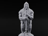 Clad in simple work clothes and a practical hood, this weathered peasant grips his wooden staff with calloused hands. His sturdy build and resolute stance speak of a lifetime of hard labor and simple determination. Whether defending his village or joining an unlikely adventure, he brings the quiet strength of common folk to any campaign.