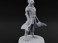 This distinguished werebat noble cuts an imposing figure in his ornate colonial coat and breeches. His bat-like features blend seamlessly with refined human posture, suggesting centuries of aristocratic breeding. Taloned feet and flowing coat-tails create dynamic movement, while his regal bearing speaks to command over lesser creatures of darkness.