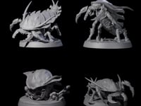 Witness a terrifying quartet of Ankhegs, each monstrous form sculpted to capture these subterranean predators in distinct hunting poses.