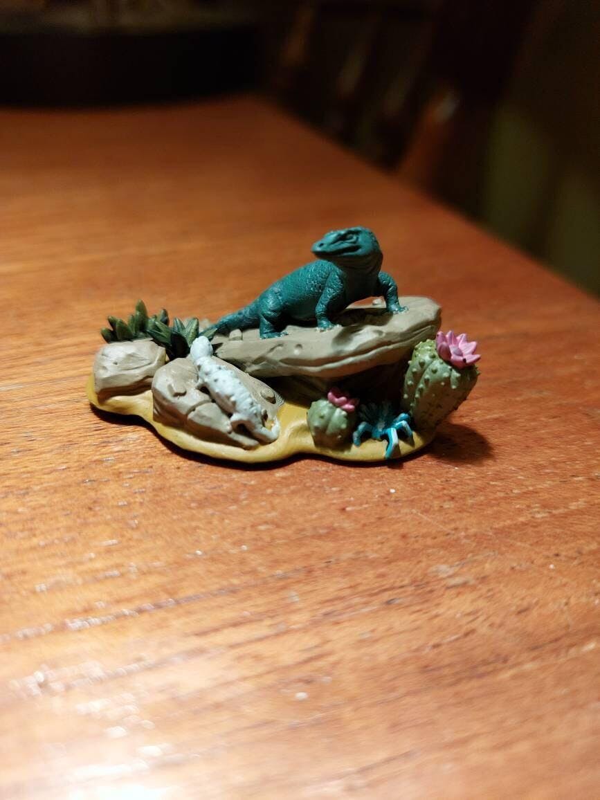 These terrain pieces are super versatile. They can place them on a bare table to set the scene, or use them with tiles or vinyl sheets.