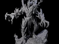 Introducing the Proud Treant Protector A, a striking miniature that captures the essence of nature's guardian. This imposing Treant stands as a testament to the beauty and power of the forest, with its muscular humanoid form and intricate, bark-like texture. Its large, branch-like antlers suggest wisdom and authority, while its commanding stance and massive, hand-like branches convey a sense of strength and resilience. This miniature is a true work of art, designed to be a centerpiece in your tabletop roleplaying adventures.