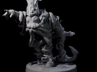 Introducing the Salty Abyssal Spawn B miniature, a mesmerizing creature sculpt that embodies the mysteries of the ocean depths. This figure features a humanoid form with a strikingly unique design, highlighted by a large crested fin that crowns its head, giving it an intimidating yet regal appearance. Its heavily textured surface mimics ancient marine life, while barnacle-like growths cover its limbs and back, enhancing its sea creature aesthetic. The miniature's tentacle-like beard and extensions, along with its commanding claw-ended arm, create an otherworldly presence, perfect for any tabletop adventure.
