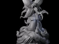 Introducing the Slithering Devourer, a mesmerizing miniature that embodies the essence of terror and predation. This monstrous figure stands out with its massive, coiling body, intricately detailed to capture the snake-like undulations that characterize its movement. The skin, tough and scaly, adds to its sinister allure, making it a formidable presence on any tabletop. Its head, reminiscent of a carnivorous plant or alien maw, features wide-open jaws lined with sharp teeth, ready to ensnare any prey that dares to cross its path. Tentacle-like appendages extend from its body, enhancing its menacing appearance and showcasing the high level of craftsmanship in its design.