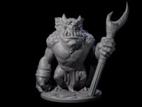 This hulking imp clutches a curved glaive with practiced ease, its muscular frame draped in simple warrior's garb. Snarling tusks and predatory stance reveal a fiend bred for violence and intimidation. Despite its diminutive fiendish status, this guardian displays the brutal confidence of a seasoned sentinel, ready to defend its master's domain with vicious determination.