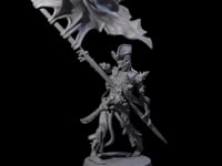 Introducing the Soggy Undead Pirate Skeleton B, a captivating miniature that perfectly captures the eerie essence of a pirate cursed by the sea. This figure is sculpted with extraordinary detail, from the tattered flag it holds aloft to the barnacles and seaweed-like growths clinging to its bones. The pirate's wide-brimmed, tattered hat and open coat give a glimpse into its haunting skeletal frame, showcasing a grim ribcage and spine. Every aspect of this undead pirate exudes a sense of bravado and menace, making it a standout piece in any collection.