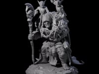 Beyond its striking appearance, the Stooped Orc Shaman tells a story of a powerful, enigmatic practitioner of ancient magic. The ornately decorated staff held in one hand, with its twisted emblem and dangling charms, symbolizes the shaman's magical prowess and high status within orcish society. The two goblin-like creatures perched playfully on its shoulders add a layer of intrigue and mischief to the narrative, inviting players to imagine the shaman's role in their campaigns as a formidable ally or a mysterious adversary.