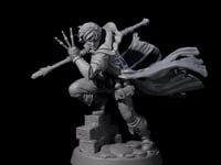Meet the Swiping Trickster Mage, a captivating TTRPG miniature that embodies agility and mystique. This male mage is captured in a dynamic crouching pose, ready to spring into action. His attire, featuring flowing robes and a billowing cloak, creates a vivid sense of movement, as if he's caught in a magical gust of wind. The tousled hair and determined expression further emphasize his readiness for whatever challenges lie ahead. Perched atop a rocky base, this 25mm mini is a perfect representation of a nimble and cunning magic caster, poised to make his mark in any adventure.