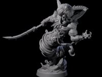 Bring the mystical and commanding presence of the Swirling Efreeti to your tabletop adventures. This intricately detailed miniature features the dynamic form of an Efreeti, a powerful fire spirit from fantasy lore, hovering menacingly with its swirling lower body. The muscular and humanoid upper body showcases sinewy muscles and ornate armor plating, while the elaborate adornments on its head mimic flames or energy tendrils, adding to its celestial allure.