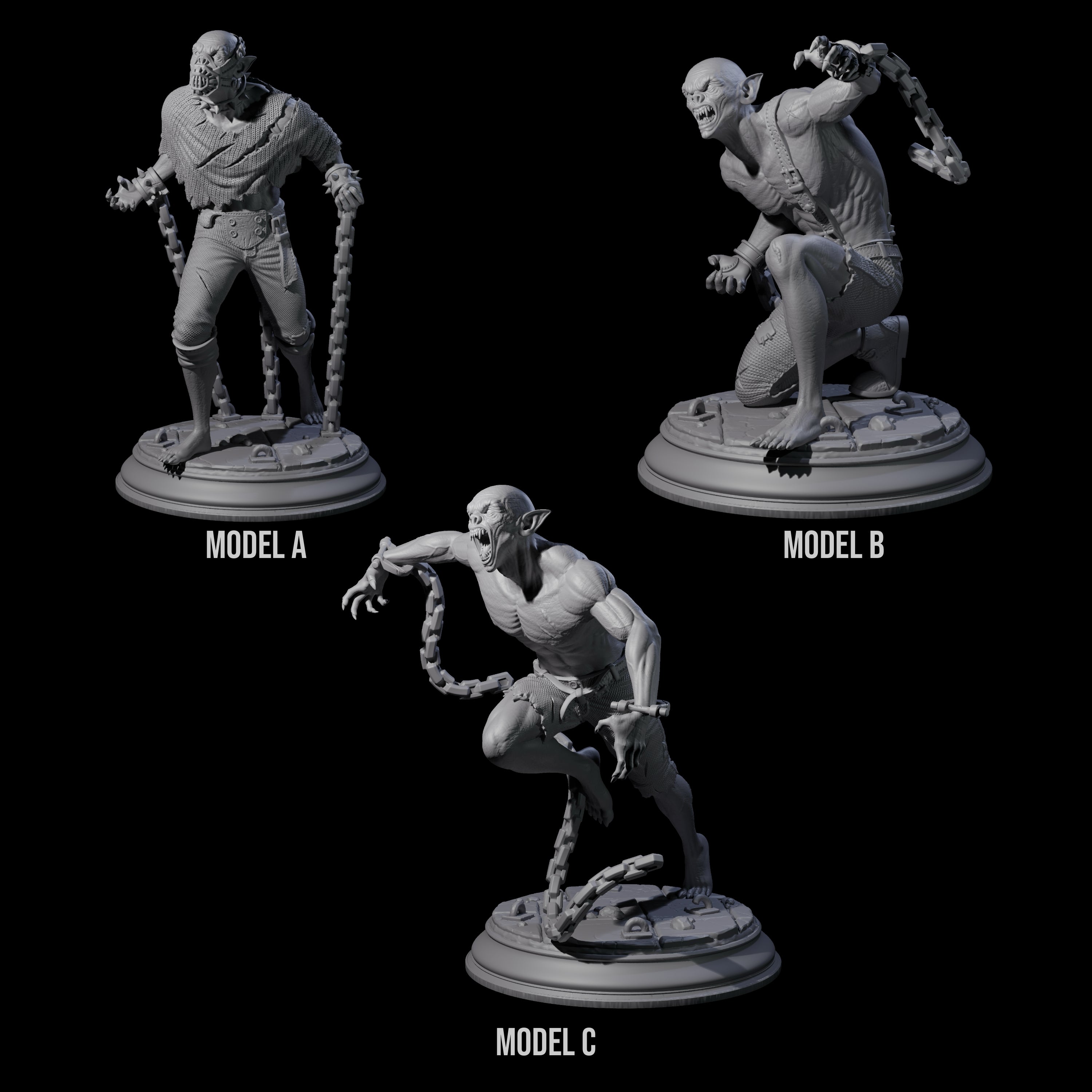 Each sculpt features distinct detail—from the shackled limbs to the snarling expressions—making them a compelling and eerie addition to any campaign. Use them individually for encounters or as a terrifying group under one master’s command.