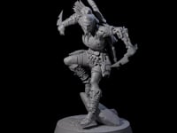 Delve into the lore of the Tree Ranger C, a guardian of the forest realms and a master of the wilderness. Her attire, rugged yet functional, is a testament to her life spent navigating the untamed terrains. The layered armor with leaf-like motifs showcases her affinity with nature, while her quiver of arrows hints at her deadly proficiency in archery. The mini's design, with one foot firmly placed on a rock, not only highlights her readiness but also her exceptional ability to traverse the most challenging landscapes.