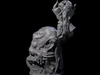 Cloaked in tattered robes, this sinister ratfolk brandishes a grotesque staff crowned with horned skulls and bone fetishes. His hunched posture and gnarled claws suggest countless hours spent brewing vile concoctions. Dark magic radiates from his ornate weapon, promising plague and pestilence to any who oppose him.