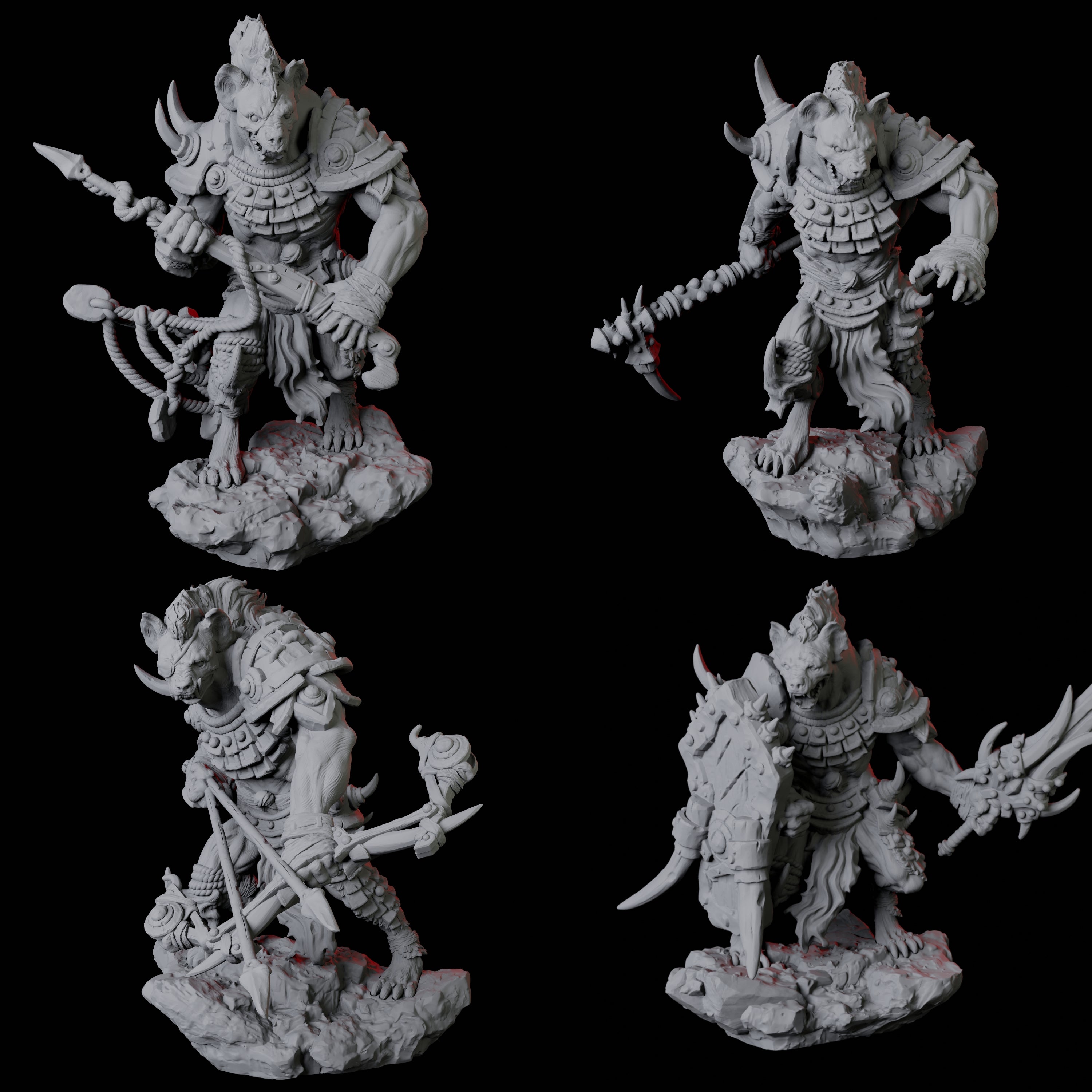 Four Giant Ratfolk Barbarians Miniature for Dungeons and Dragons, Pathfinder or other TTRPGs