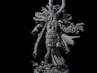 This highly detailed miniature captures the essence of a powerful spore priest, with their flowing, textured cloak billowing around their dynamic pose. The figure features intricate accessories including ritual pouches, ceremonial beads, and mysterious wrappings. The sculpted base, with its organic tendrils and root-like formations, creates an immersive environment that enhances the miniature's presence on the tabletop.