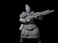 Standing in perfect formation stance, this armored crossbowman embodies centuries of martial discipline. His lamellar armor gleams with traditional craftsmanship while powerful arms steady a formidable crossbow. The warrior's focused expression and ready posture speak of endless drills and unwavering loyalty. Whether defending ancient walls or marching in formation, he represents the backbone of any organized military force.