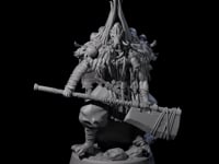 Immerse yourself in the dark, chaotic world of fantasy roleplay with this cultist who seems to be forever caught in a moment of ritual or combat. His aggressive crouch and the massive, formidable hammer he wields suggest a readiness for action, whether leading dark rituals or engaging in intense battles. The wraps or bandages on his arms hint at a life filled with combat and ritualistic scarifications, adding depth to his backstory and purpose in your game.