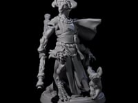 Step into a world of fantasy and enchantment with this Dragonborn druid, a character designed for adventures of high standing and mystical prowess. A staff, intricately carved with natural motifs, is held aloft as a symbol of nature's power, while a small, rabbit-like creature accompanies the druid. This familiar or companion adds a touch of softness to the figure's formidable presence, making it an ideal choice for players looking to weave intricate stories of companionship and magical adventures in their campaigns.