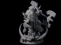 Introducing the Elite Orc Hit Squad A miniature, a perfect embodiment of orcish ferocity and martial prowess. This meticulously crafted figure showcases a formidable orc warrior in an aggressive, battle-ready stance, poised to unleash devastation with its enormous double-headed axe. The intricate carvings on the axe blades complement the orc's heavily muscled physique, conveying a sense of raw power and intimidating presence. Clad in rugged, spike-adorned armor with fur details, this miniature exudes a barbaric yet functional aesthetic, while the helmet with prominent horns partially obscures its face, heightening its menacing allure.