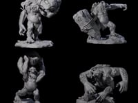 Unleash chaos on the battlefield with this set of four massive ettins, each caught in the act of wielding devastating stone weaponry.