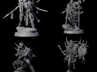 These shamans are not just figures; they are storytellers, each holding a place in the lore of your tabletop adventures. Whether it's Model A, the high-ranking spellcaster with a twisted staff, or Model D, the warrior priest poised for battle, each shaman enriches the narrative with their own story. Model B, balancing precariously with trinkets swaying in the wind, and Model C, holding a human skull in a necromantic gesture, add layers of intrigue and depth to your campaigns.