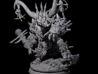 In the realm of fantasy roleplaying games, this ogre is not just a mere monster; it's a story waiting to unfold. With its intricately detailed horns adorned with hanging bones and magical fetishes, the Hulking Ogre Juggernaut could be a guardian of ancient secrets or a ruthless conqueror on a quest for domination. Its intimidating presence and fierce visage suggest a character rich with history and potential for storytelling, inviting players to explore its backstory and motivations.
