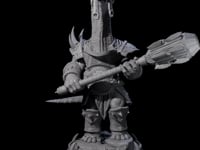 Introducing the Protective Saurian Warrior I, a striking miniature that captures the essence of a humanoid dinosaur with an elongated neck and reptilian face. This imposing figure is heavily armored, showcasing intricate geometric patterns etched into its cuirass and pauldrons, giving it a robust and formidable presence. Its muscular legs and armored stance exude stability and strength, while the detailed scale textures and decorative head crest emphasize its reptilian heritage. The warrior grips a large, formidable weapon resembling a mace or club, adorned with straps and a spiked head, enhancing its intimidating aura.