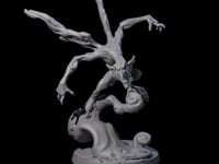 Immerse yourself in the mystical realm with the Roiling Smoke Mephit, a captivating miniature that brings the intangible essence of smoke to life. This exquisite piece showcases a creature with an ethereal form, its slender body and elongated limbs beautifully crafted to mimic the swirling dance of smoke. The angular face, framed by elongated ears and an impish grin, adds an air of mischief, while expansive wings, curled like rising smoke, suggest imminent flight. Every detail has been meticulously sculpted to ensure that the Roiling Smoke Mephit embodies the spirit of elemental grace and fluidity, making it a standout addition to any tabletop.