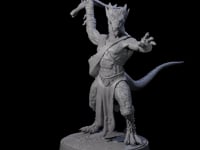 This kobold is in the midst of an intense moment, holding a sling high above its head, ready to unleash a projectile. The simplicity of its attire—a loincloth and an ammunition strap—emphasizes its agility and readiness for battle. The extended tail provides balance, allowing the creature to maintain a steady stance as it prepares to release its slung stone. This miniature tells a story of primitive yet effective combat, perfectly suited for encounters in your fantasy campaigns.