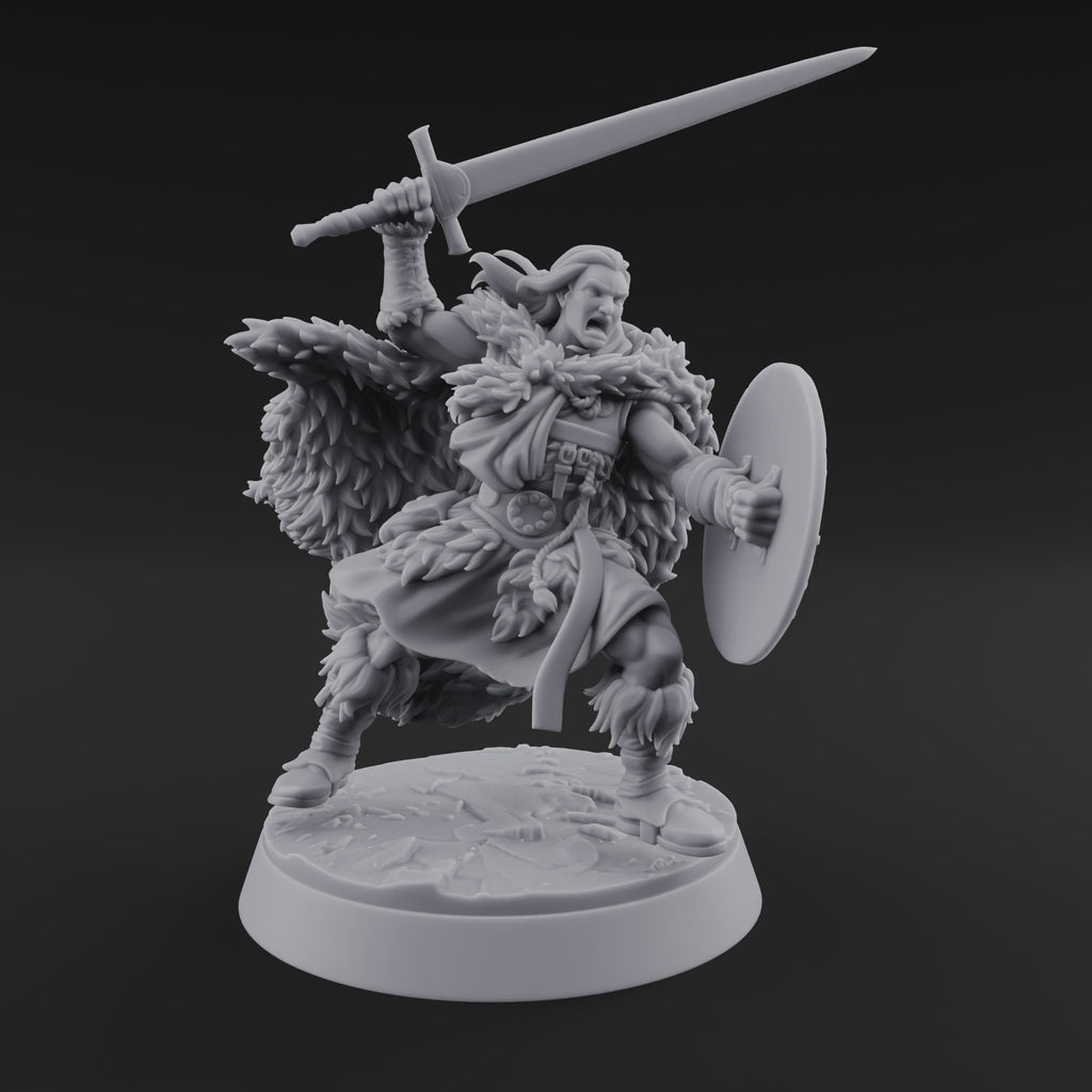 Field him as a fearsome barbarian champion in your D&D or Pathfinder campaign — a tribal chieftain, berserker hire, or wilderness encounter that will have your players reaching for their dice in panic. Beyond the RPG table, this imposing sculpt commands attention as a warband leader for fantasy skirmish games, a regiment hero for 28mm ranked battles, or a standout character in any sword-and-sorcery wargame collection.