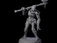 This imposing warforged warrior grips an enormous two-handed warhammer, its bulk speaking to devastating combat potential. Heavy plated armor covers his mechanical frame, while his confident stance radiates battlefield experience. Battle-worn details across his construct body tell stories of countless conflicts survived through sheer determination and martial prowess.