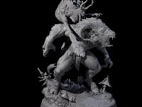 Unleash the chaos of the wilderness with the Crazed Forest Hag riding a Beast miniature. This TTRPG figure captures the eerie essence of a wild, untamed forest, featuring a disheveled hag with sharp, menacing features and tattered garments made from vines and leaves. Her gaunt face and wild demeanor perfectly complement the ferocious creature she rides, creating a scene that is both captivating and fearsome.