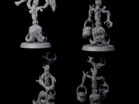 Discover the eerie presence of the Four Evil Animated Brooms, a captivating addition to your tabletop role-playing game adventures. Each broom is meticulously crafted with unique details, showcasing a twisted, gnarled tree-like structure. The long, slender, branch-like limbs extend menacingly, capturing a sense of movement and malice. Every broom stands in a distinct pose, suggesting a life of its own, imbued with dark magic that brings an ominous personality to your tabletop encounters.