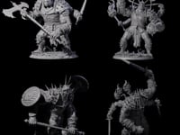 These detailed miniatures showcase heavily armored humanoid figures in aggressive, forward-leaning stances. Each construct features intricate plate and chain armor complemented by menacing spiked pauldrons and distinctive pointed helmets with narrow vision slits. The circular bases feature sculpted rocky terrain, providing a stable foundation for these formidable guardians. Perfect for dungeon masters seeking memorable construct encounters or collectors wanting impressive display pieces.