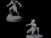 Introducing the Two Angry Wretches, a dynamic duo of goblin-like creatures perfectly crafted for your tabletop adventures. These miniatures, poised for action, capture the essence of mischief and menace. Model A stands in a stalking stance, ready to pounce with its clawed fingers splayed out aggressively. Its detailed tattered clothing, ragged loincloth, and wrapped limbs hint at a rogue or feral nature, while its snarling face with large ears and sharp teeth adds to its intimidating presence.